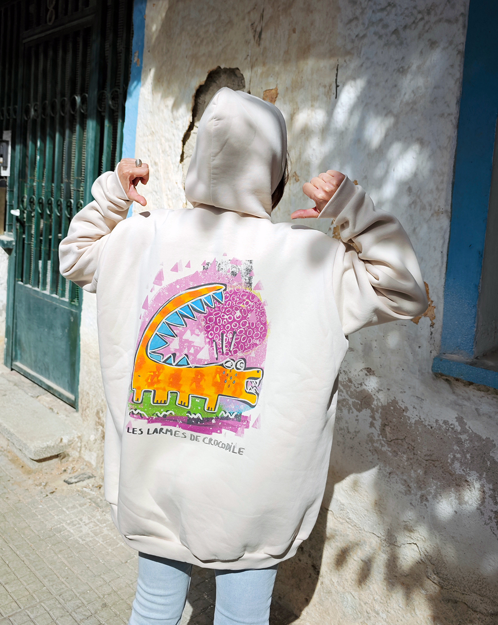 Η τυπωμένη έκδοση του Walking on Sunshine μπορεί να τοποθετηθεί μόνο σε ανοιχτόχρωμο φούτερ. Γι’ αυτό μπορείτε να το βρείτε μόνο στο εκρού χρώμα.