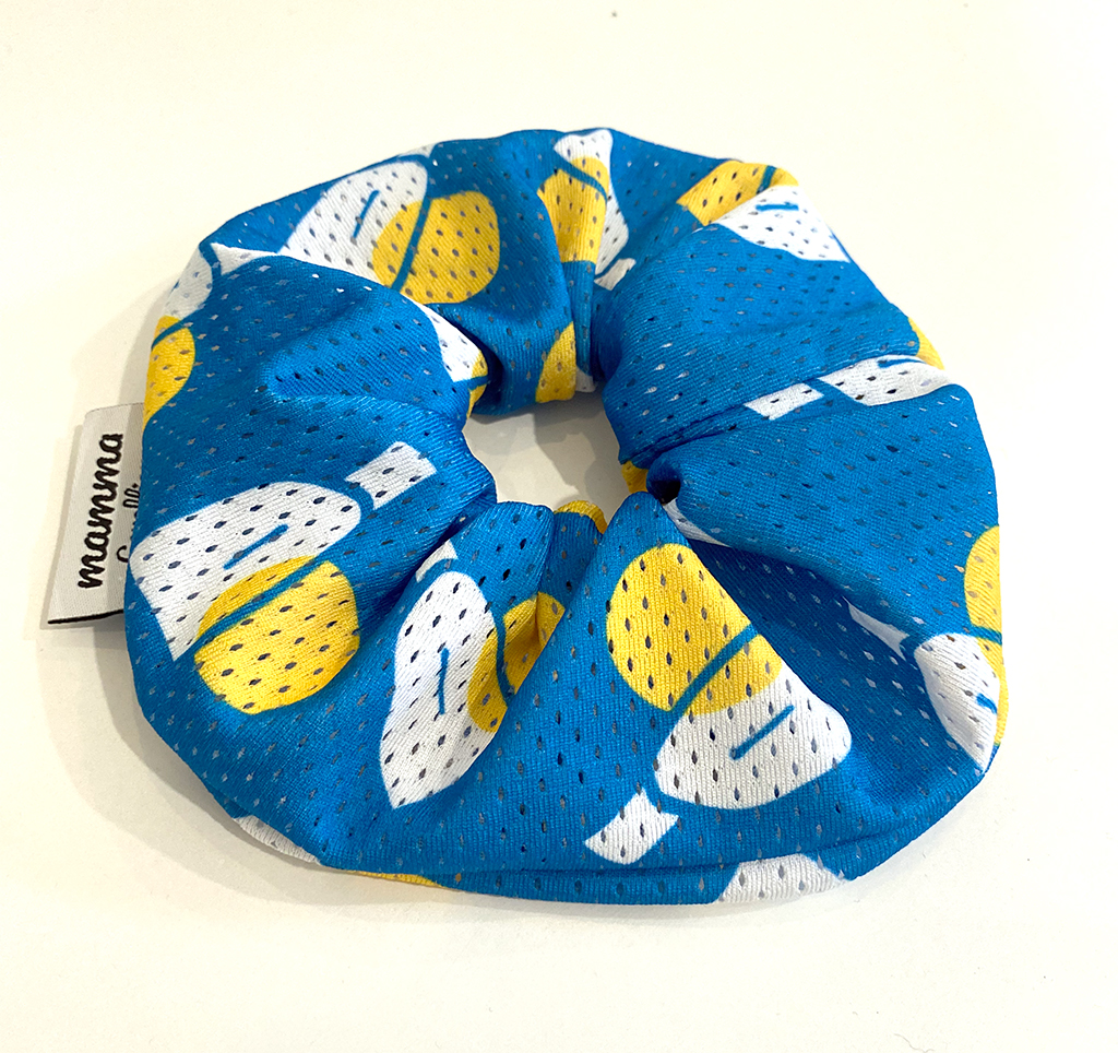 Χειροποίητο λαστιχάκι για τα μαλλιά με εκτύπωση από οικολογικά χρώματα στα μοναδικά σχέδια μας, από την καλοκαιρινή μας συλλογή, ύφασμα από ανακυκλωμένο Polyester σε μέγεθος XL.